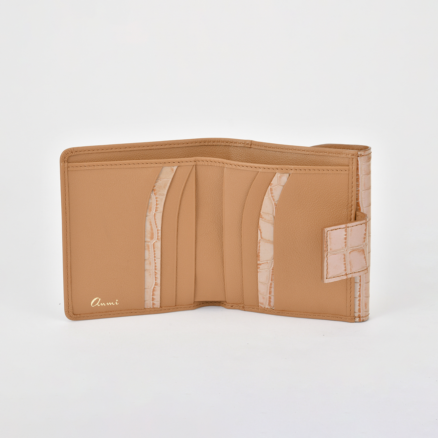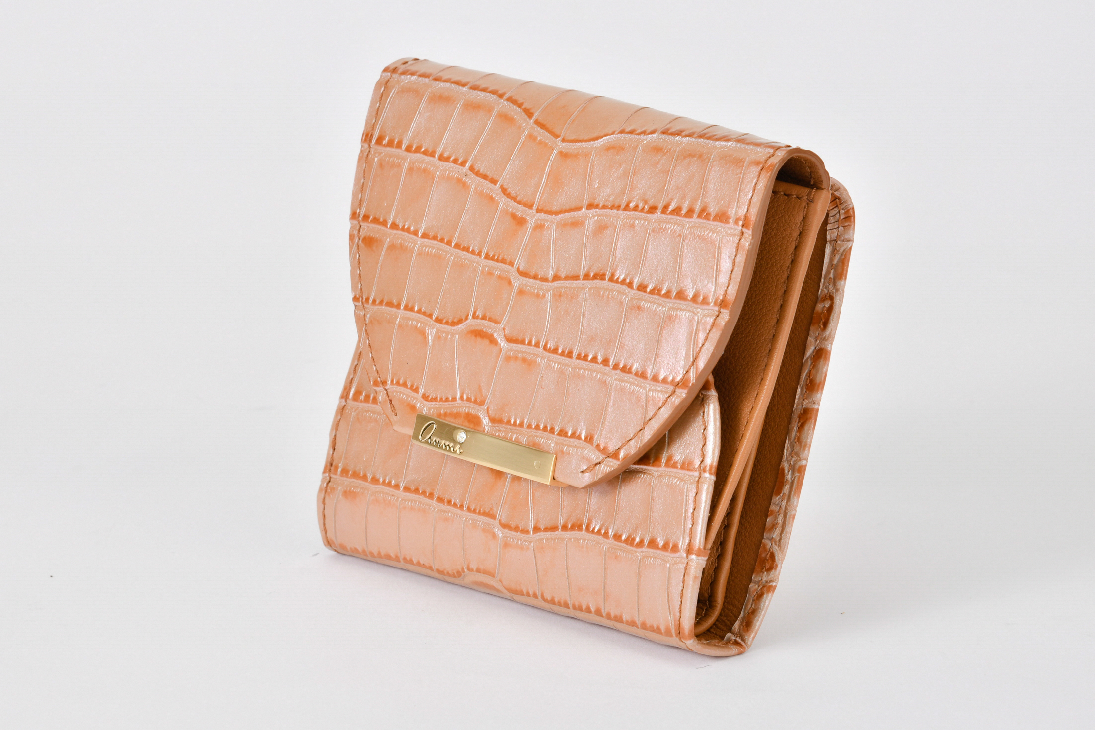 「デュエット」シリーズよりフェミニンで優雅なスリムさ誇るanmi革小物、コンパクトな二つ折り財布。