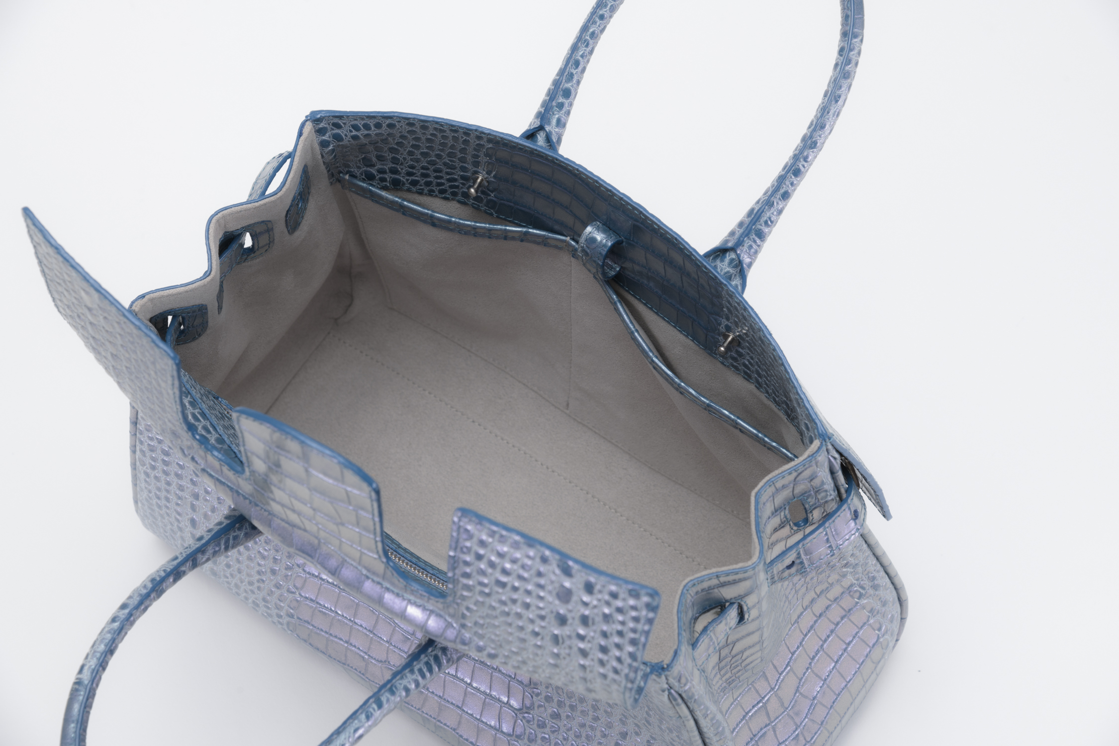 さらに随所に見られるコバ(革の切り口)は各色異なるオリジナルカラーでエッジィーなアクセントに、手触り良い柔らかなスエード内装も各色異なるカラー裏地でバッグを開ける度に心華やぎお楽しみ頂けます。