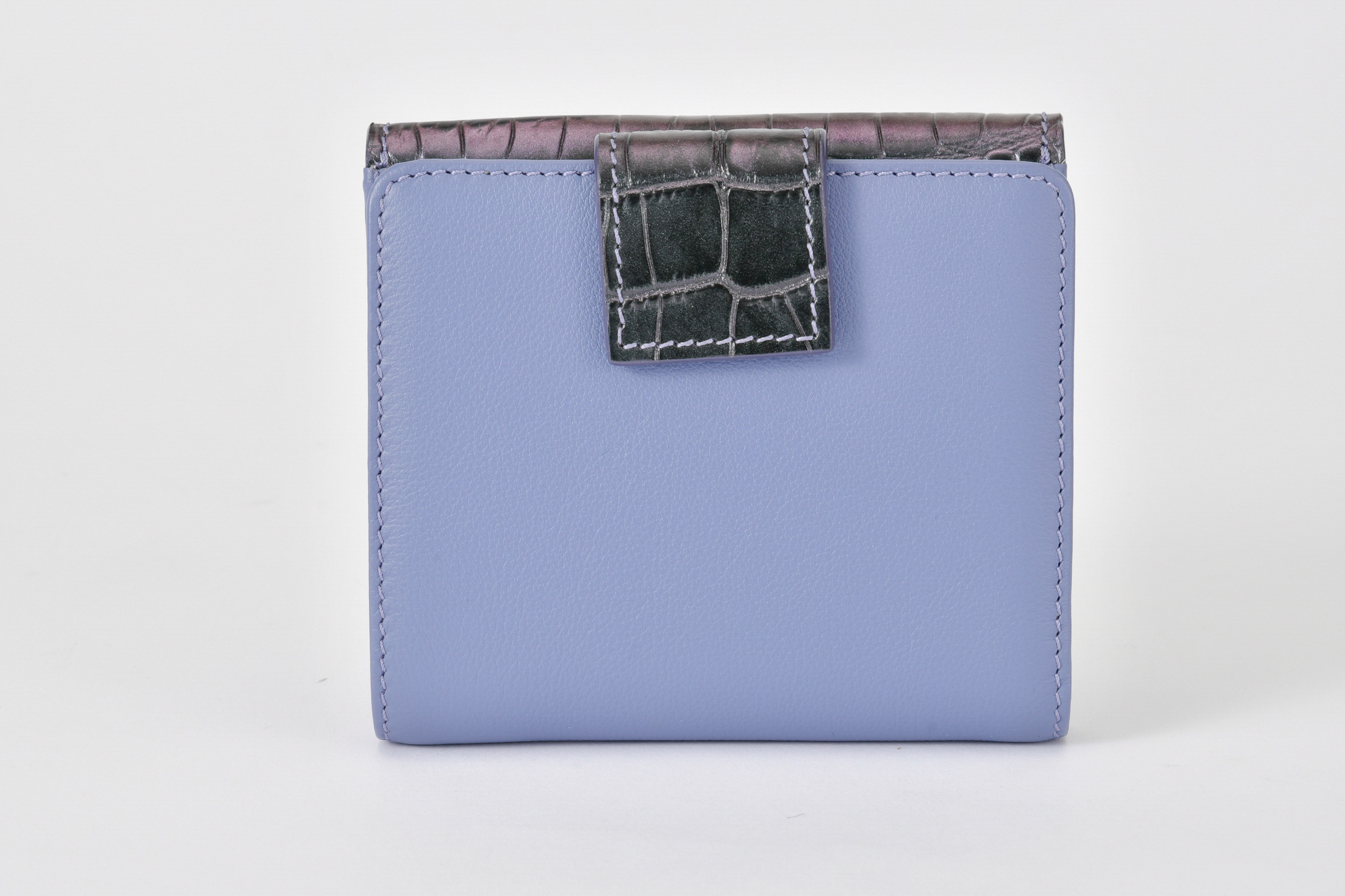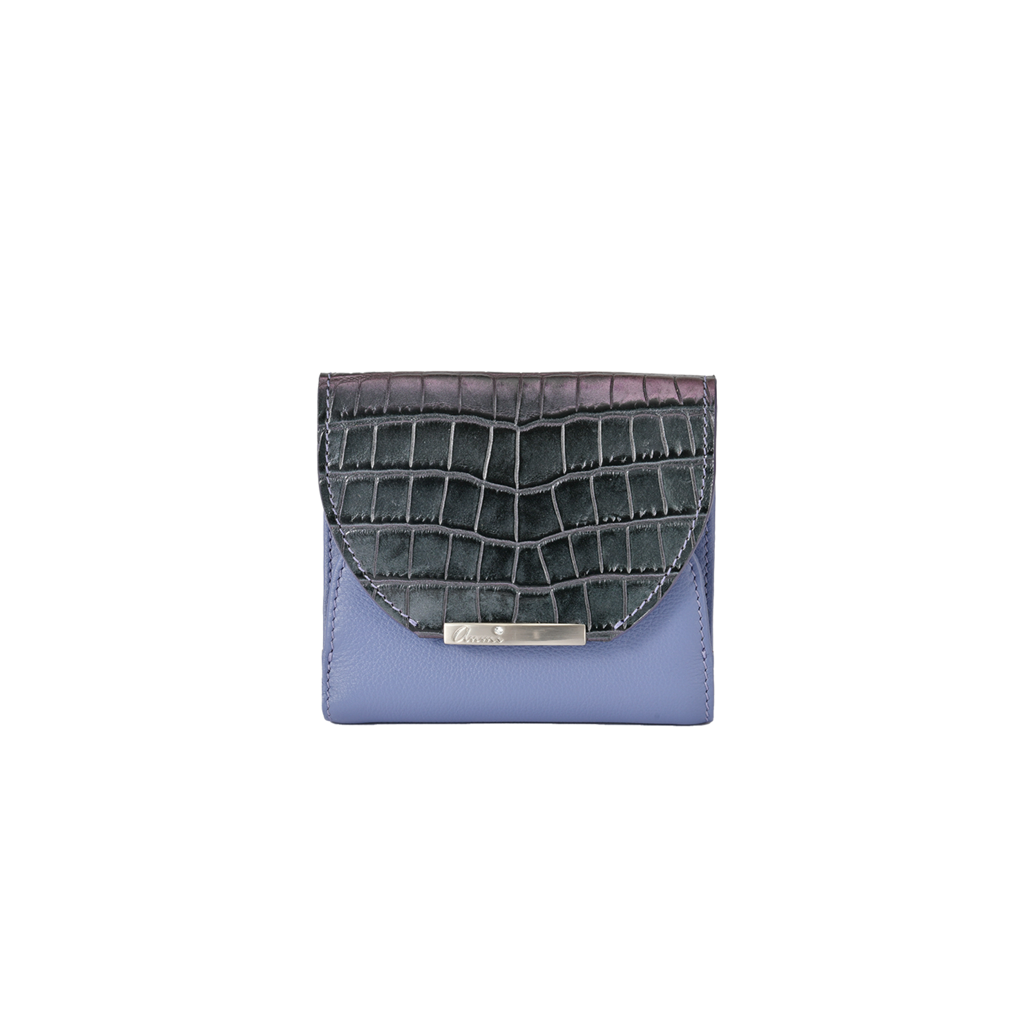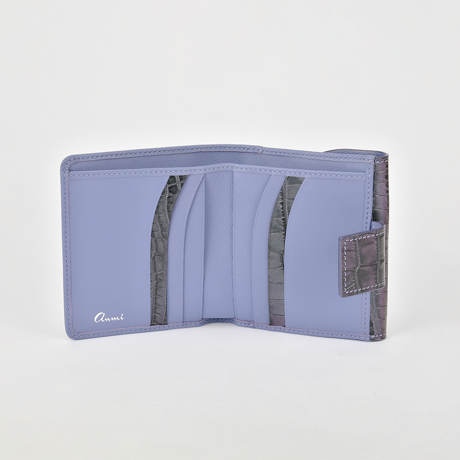「デュエット」シリーズよりフェミニンで優雅なスリムさ誇るanmi革小物、コンパクトな二つ折り財布。メルドとは融合、ブレンドと言う意味。anmi特注パールレザーと相性の良い異素材コンビネーションで色をさらに楽しく豊かにしなやかさを極めた逸品。