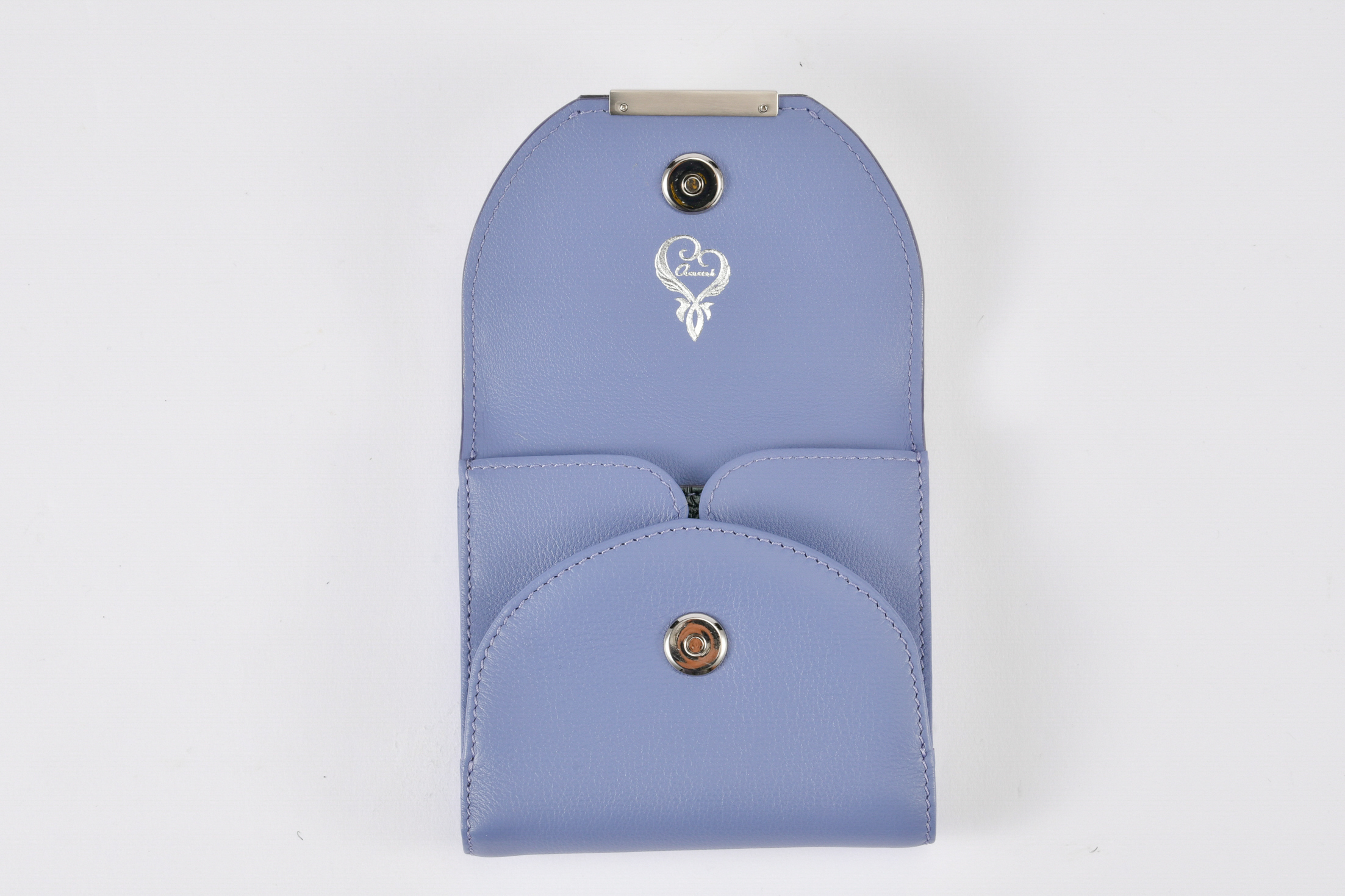 アールを基調にまるい深めの被せはMoon(満月)をイメージし、緩やかなカーブを描くanmiオリジナルメタルがアクセント。エンベロープスタイルなマグネットフラップ開閉でストレスフリー。
