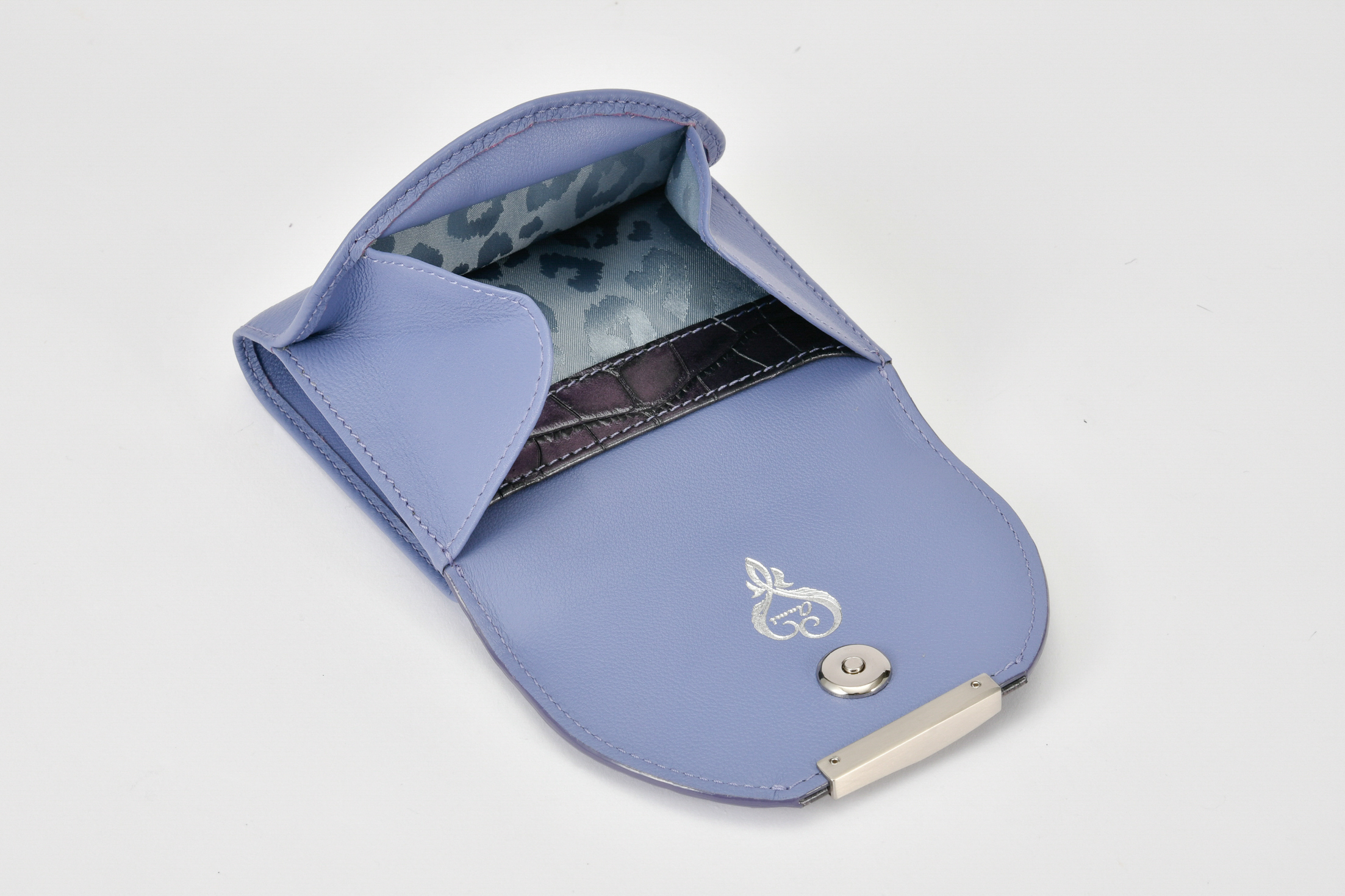 内装は贅沢な手触り優しいフレンチレザーとファスナー付きのコインポケット裏地は艶めくレオパードパターンサテン地を使用。曲線を描いた複数のカードポケットも必要ミニマム数に完備され、開く度に美しく豊かな視覚感度の高い、長く使えるデザインが魅力です。