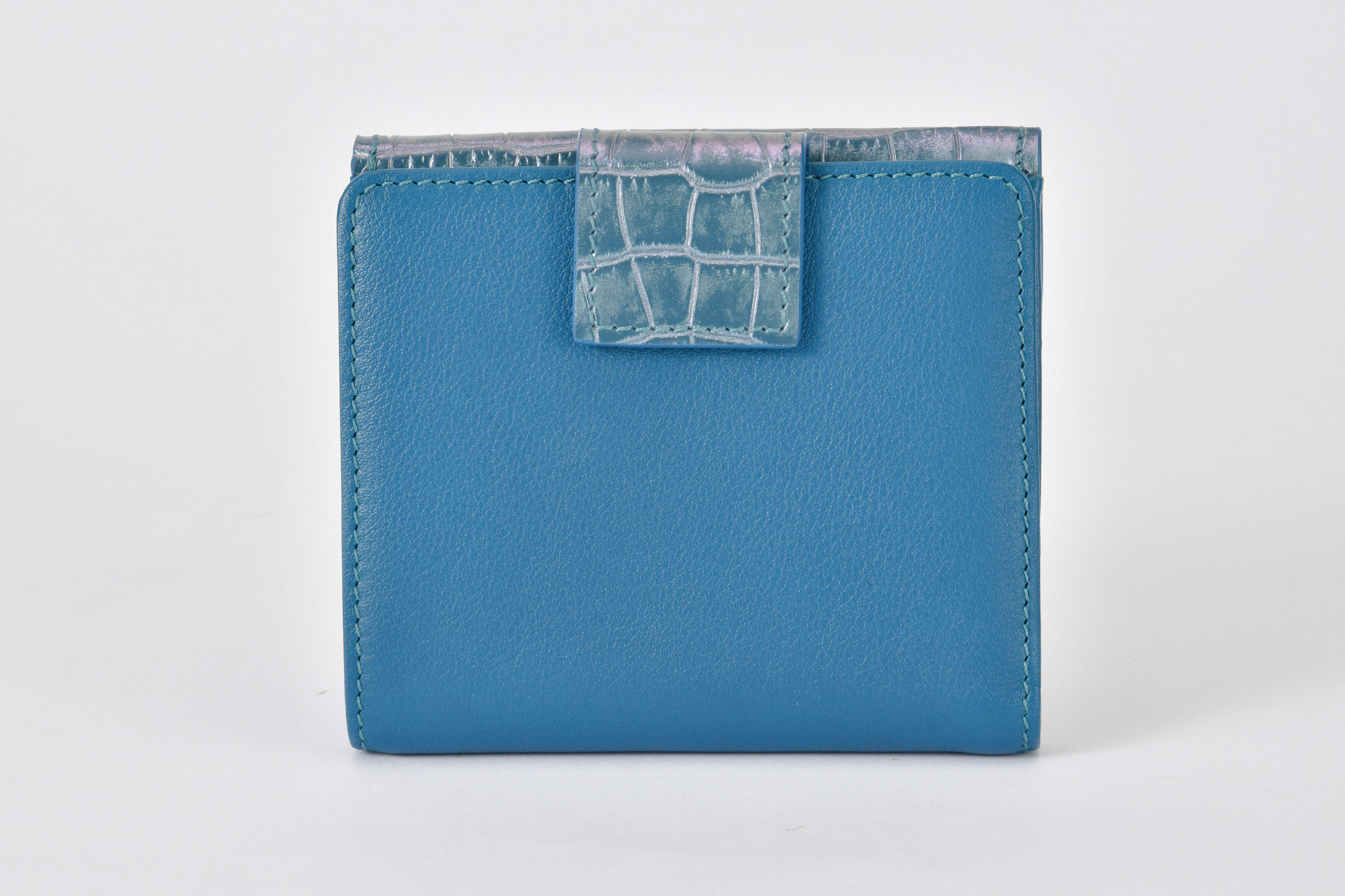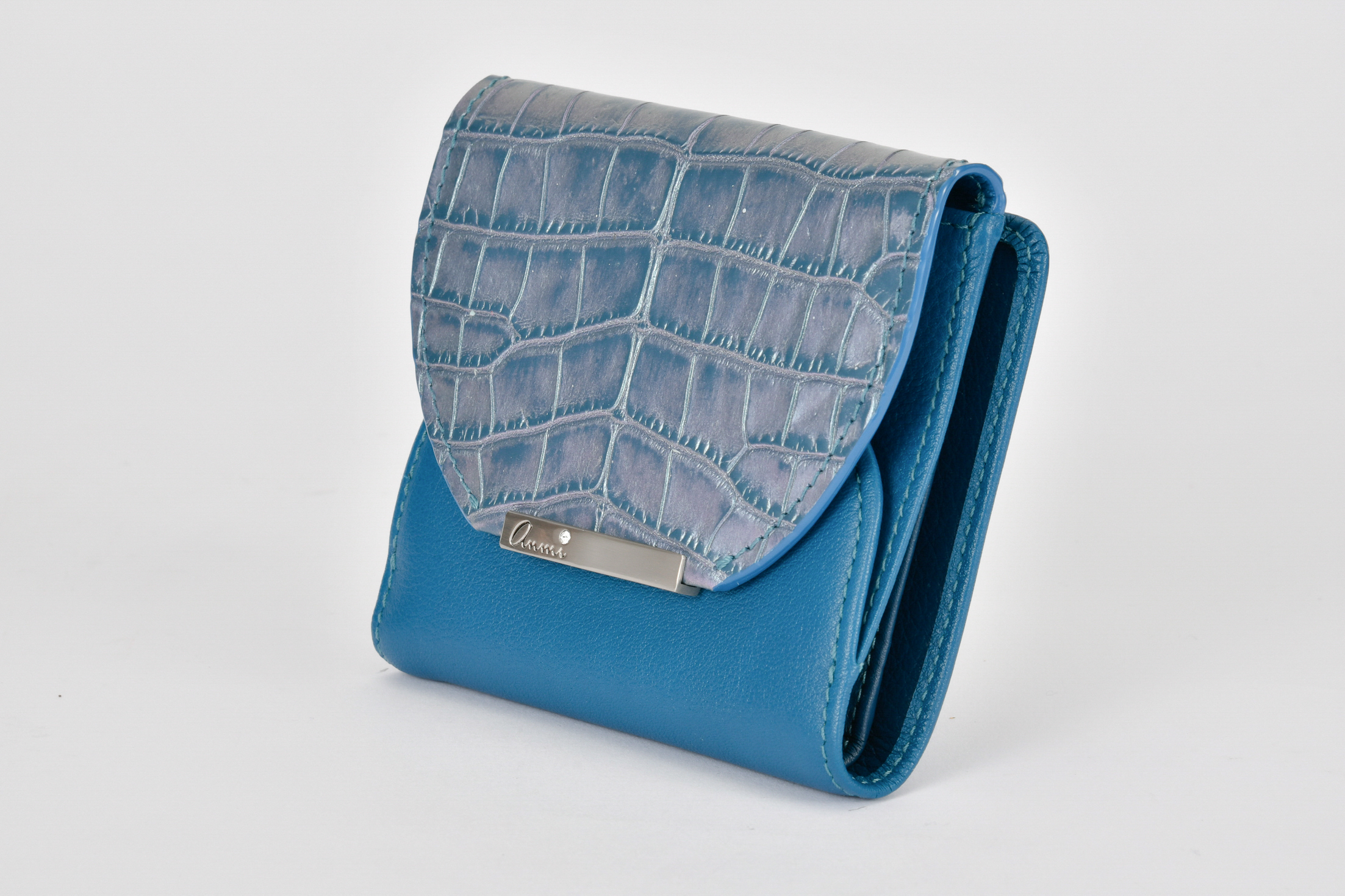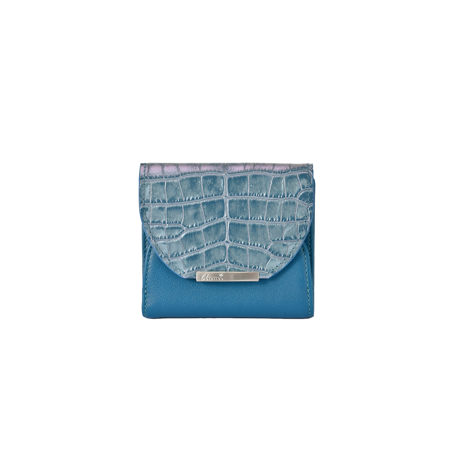 「デュエット」シリーズよりフェミニンで優雅なスリムさ誇るanmi革小物、コンパクトな二つ折り財布。メルドとは融合、ブレンドと言う意味。anmi特注パールレザーと相性の良い異素材コンビネーションで色をさらに楽しく豊かにしなやかさを極めた逸品。