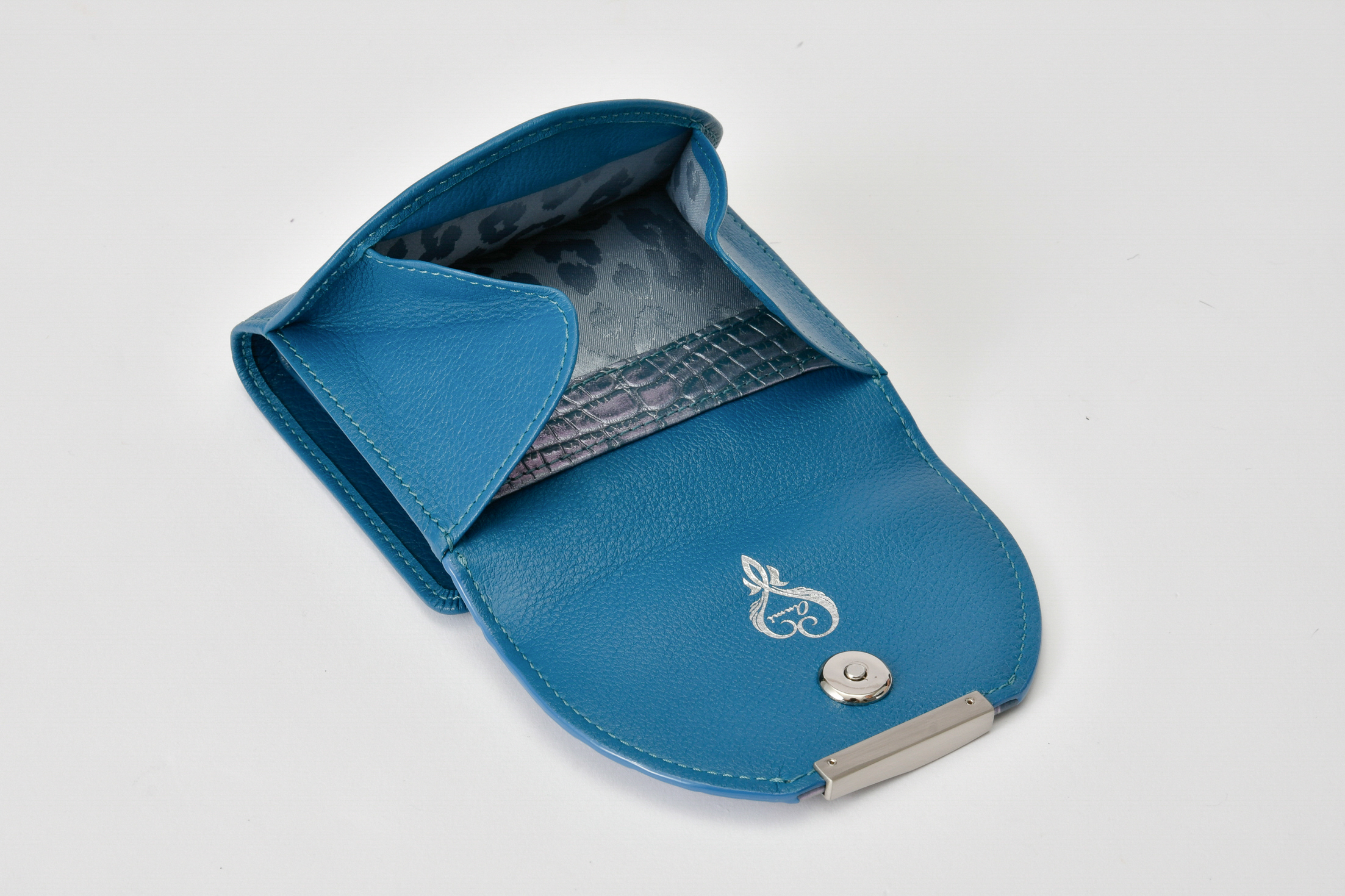 内装は贅沢な手触り優しいフレンチレザーとファスナー付きのコインポケット裏地は艶めくレオパードパターンサテン地を使用。曲線を描いた複数のカードポケットも必要ミニマム数に完備され、開く度に美しく豊かな視覚感度の高い、長く使えるデザインが魅力です。
