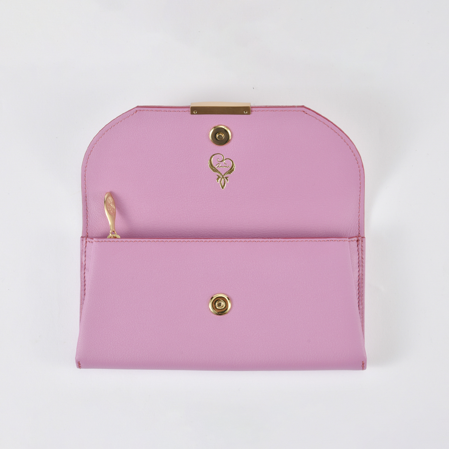 「デュエット」シリーズよりフェミニンで優雅なスリムさ誇るanmi革小物、被せ長財布。