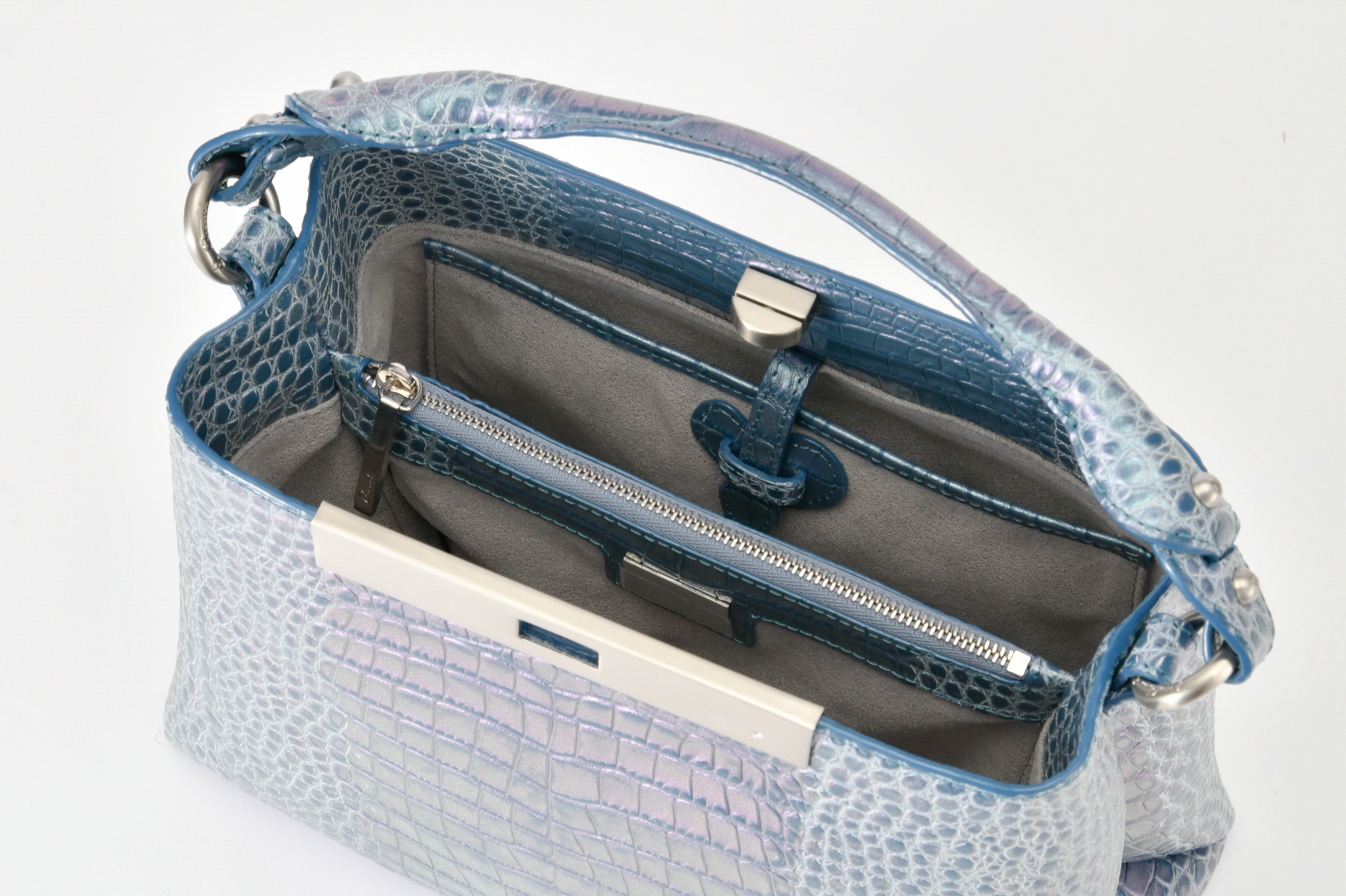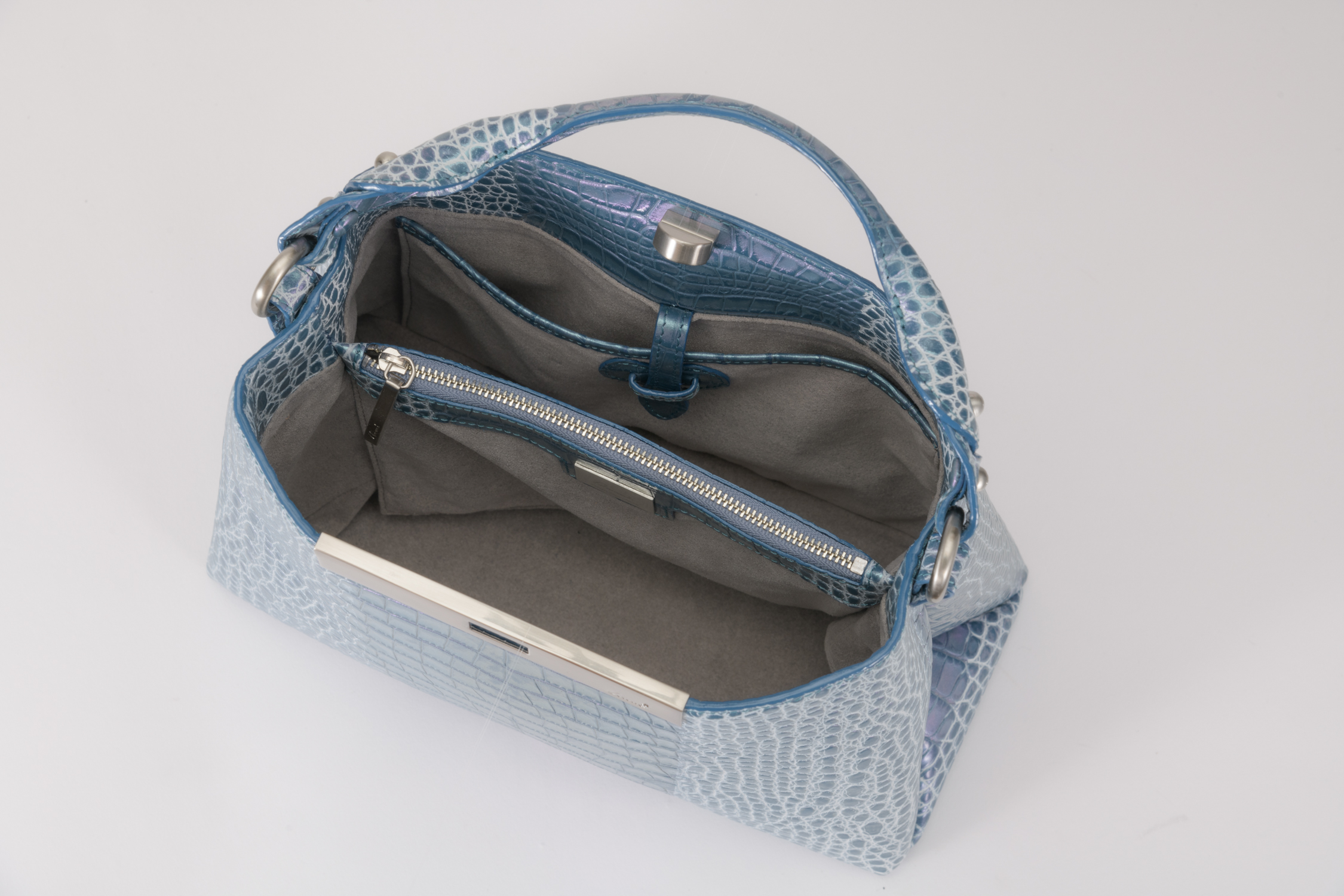 アクアブルー(内装:ライトグレー、金具:シルバー)