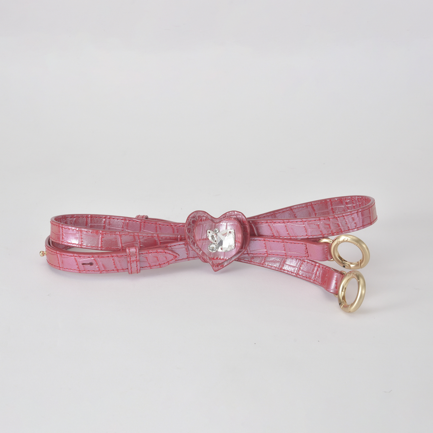 ジュエルのように大粒のスワロフスキーを施し、このクリップを使うことで自由なアレンジができるようデザインされています。例えば、ベルトを好きな形に束ねてクリップで留め、バッグ正面にぶら下げたり、ショルダーベルトにこのクリップを留めて、まるでハートの蝶が肩に乗っているように飾ったりと、自分なりのアクセントとしてデザインの変化をお楽しみ頂けます。